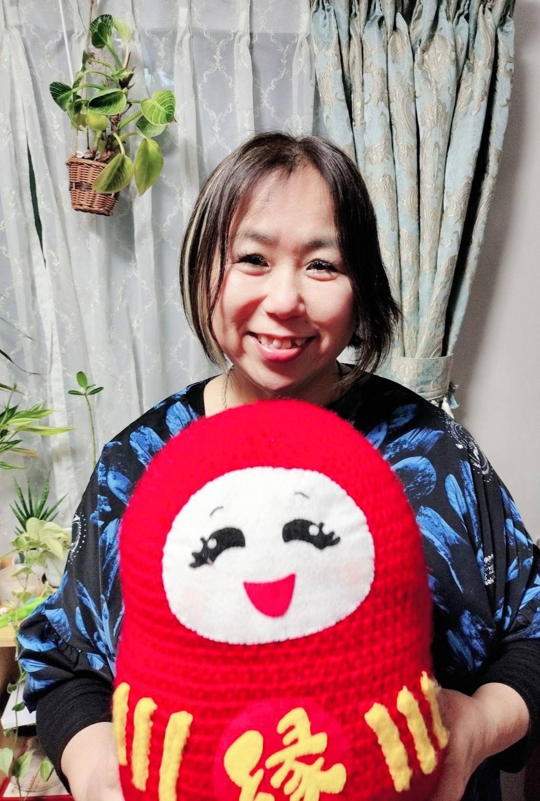 私が抱っこしているだるまちゃんはさゆりんだるまの編みぐるみです。